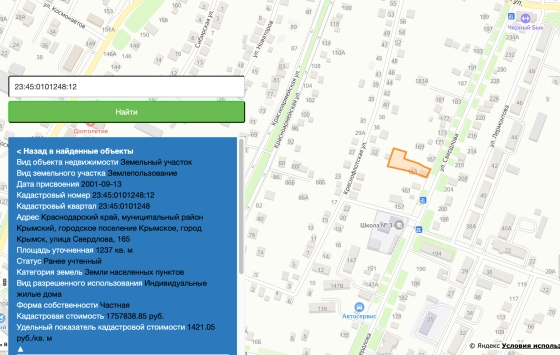 Кадастровый номер участка23:45:0101248:12